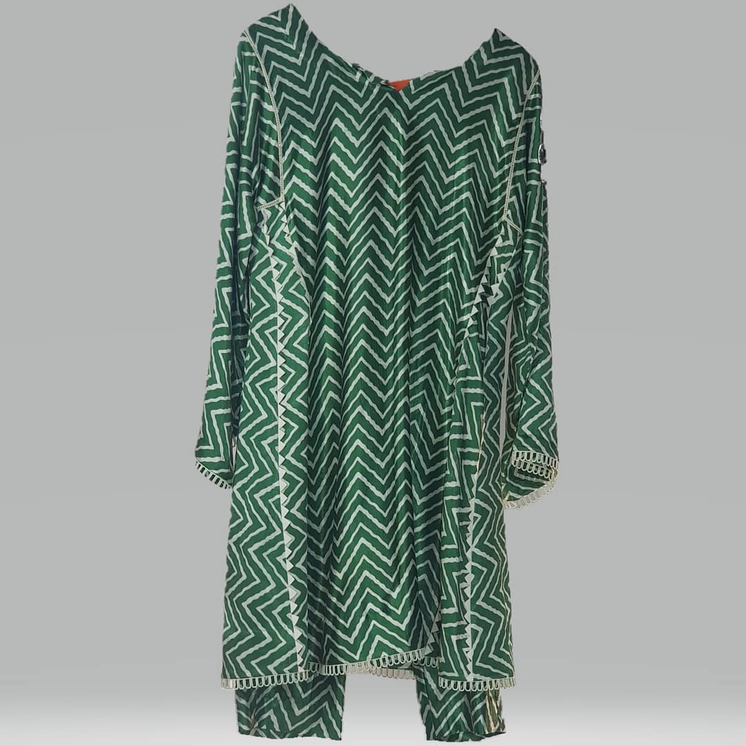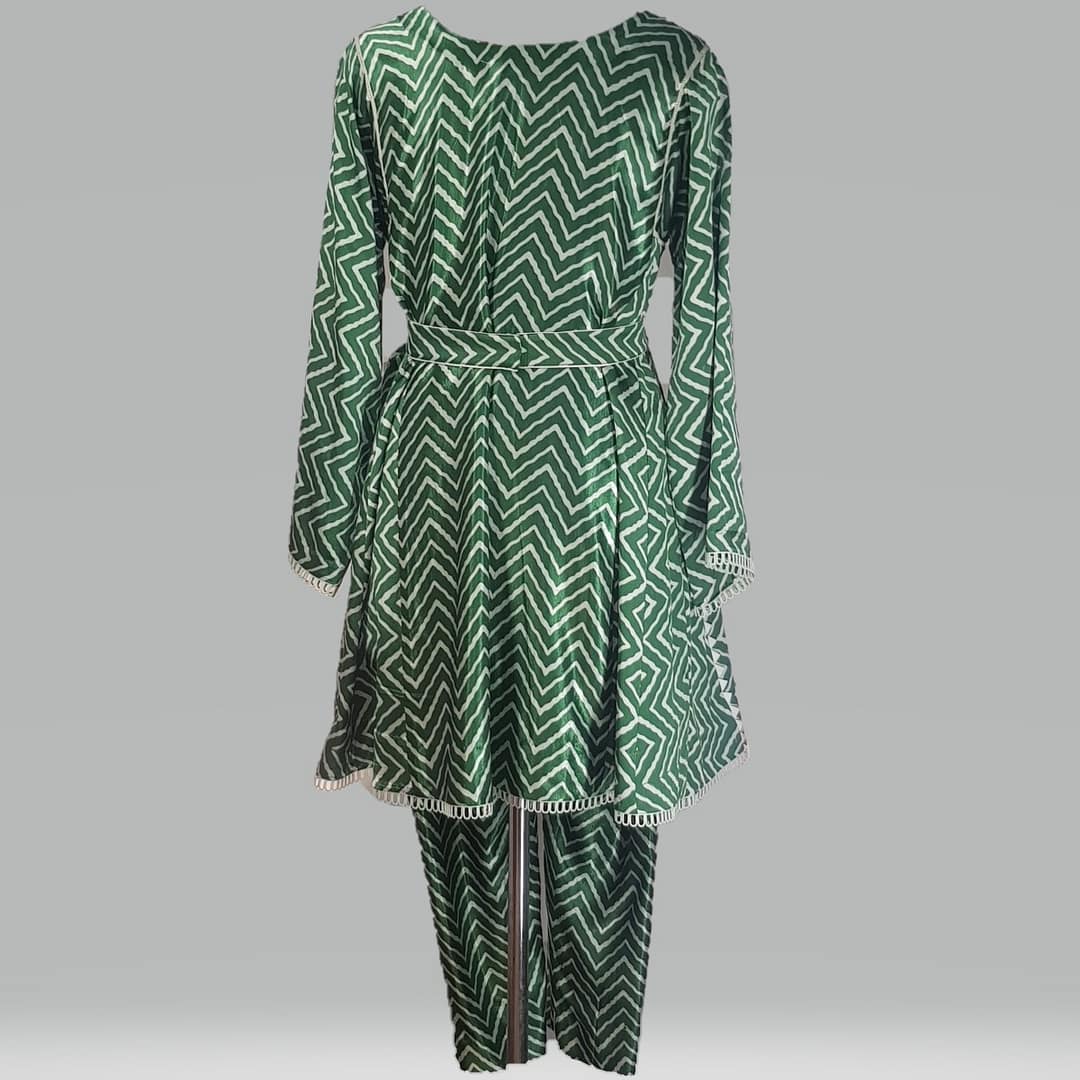 Featuring an A-line short kurta with box pants and belt with trims in detailing.