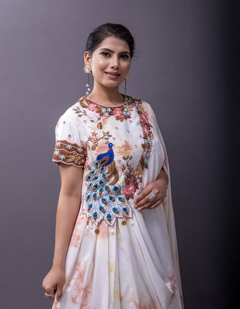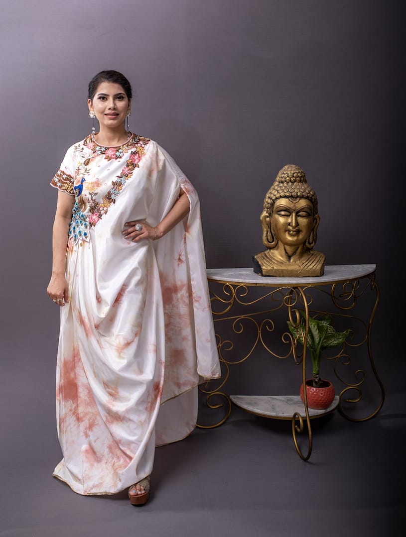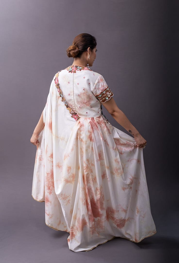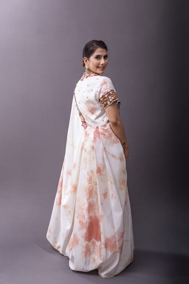 Drape dress embellished with patra work and zardozi on the york, neckline and the sleeves